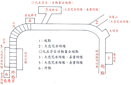 活動內容:採登山健行/淨山/念佛/義診、摸彩活動慶祝院慶期提倡關懷大自然、重新學習尋求「人與自然V.S身與心的平衡喜悅」;同時將佛陀的慈與悲的實踐精神用我們熱忱的心和堅毅的步伐走出一片慈悲喜捨的人間淨土。